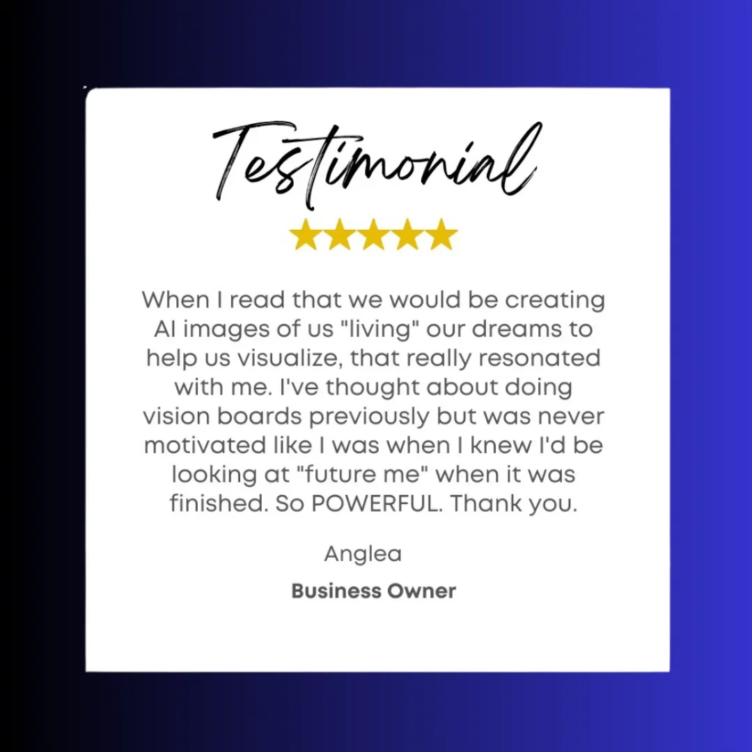 With over 20 years in transformation, mindset, and identity work, I blend neuroscience, energetic alignment, and AI-generated Future Self images to help you create a vision so real your brain believes it’s already yours.